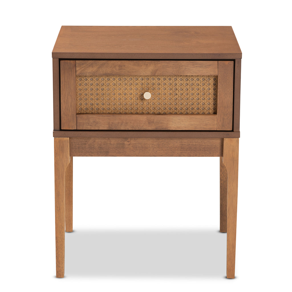 Capture the essence of mid-century beauty at your bedside with the retro inspired Ramiel nightstand. Made in , this charming piece consists of a solid wood frame adorned with woven rattan embellishments. The drawer offers convenient storage for all your nighttime essentials while reserving the tabletop for daily use. The Ramiel requires assembly and features a petite metal drawer knob that brilliantly stands out against the natural tones of the wood. Carrying on the allure of retro design, the Ramiel nightstand is sure to become a beloved addition to any bedroom layout.