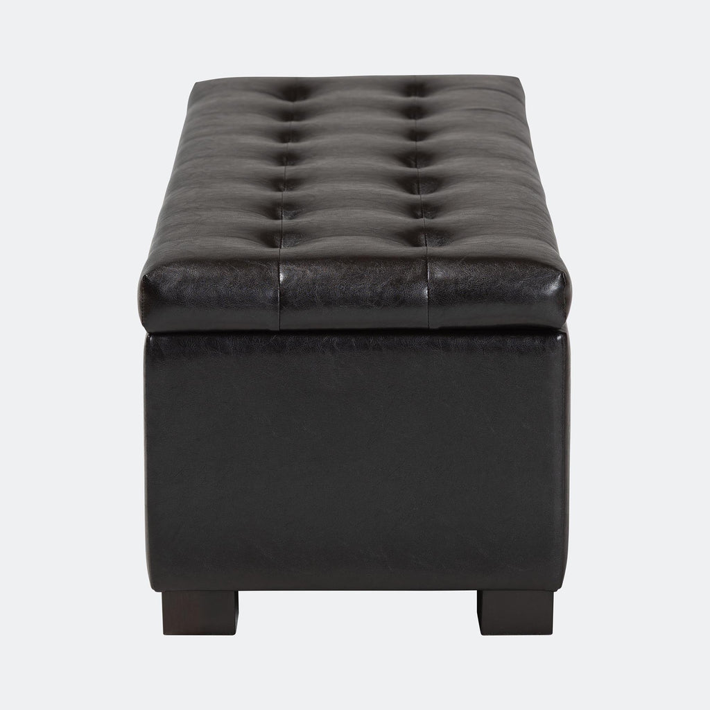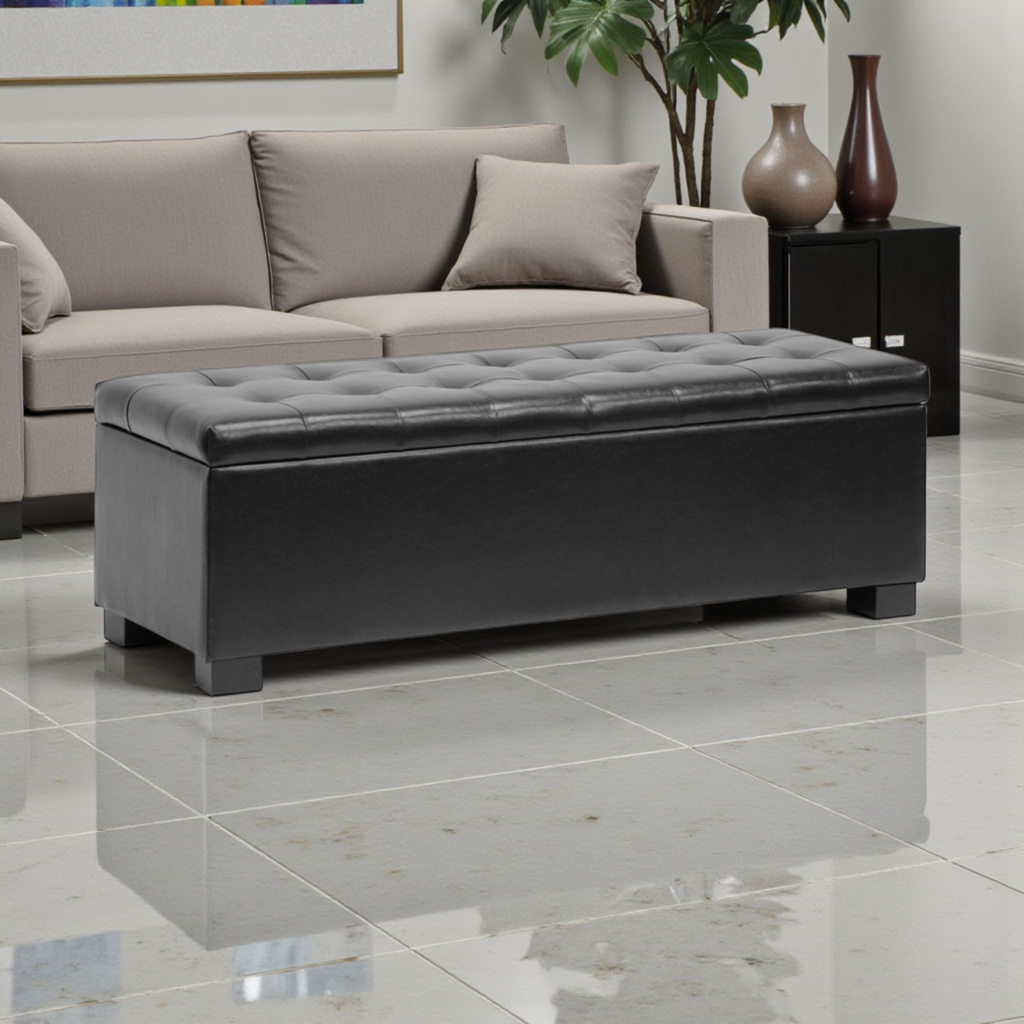 Looking for hidden storage without compromising on style? The Roanoke Ottoman delivers both. Designed with a sleek bonded leather exterior and supported by a durable eucalyptus wood frame, this contemporary ottoman blends form and function effortlessly. Plush polyurethane foam padding provides lasting comfort, making the top ideal for extra seating or a relaxing footrest. Finished with bold rectangular feet that contrast beautifully with its softly rounded corners, the Roanoke Ottoman is a stylish addition to any space.