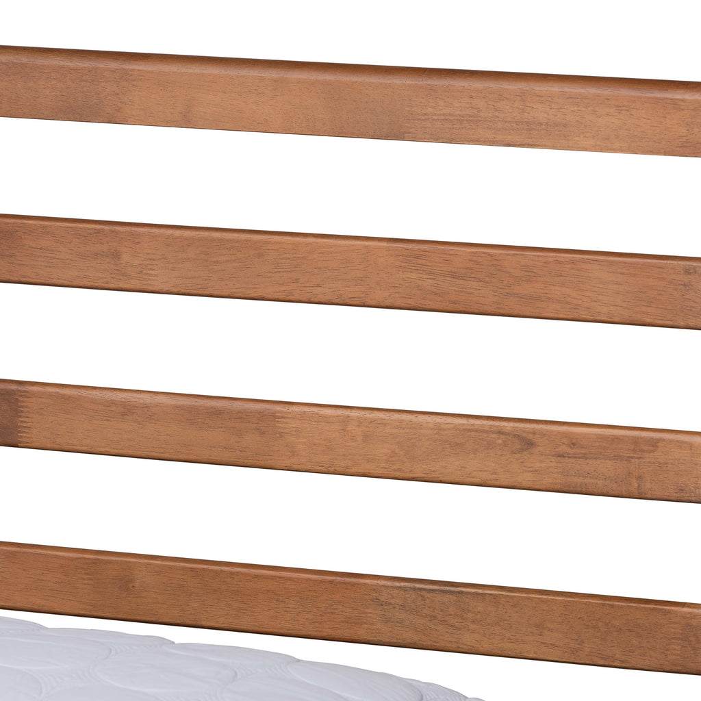 Bring natural warmth and style to your bedroom with the beautiful Shiro Queen Platform Bed! This stunning bed is made in and crafted from sturdy wood that shows off a lovely ash walnut finish. The slatted headboard gives it a warm, inviting look while letting light shine through, which helps make small rooms feel bigger. Plus, the splayed legs add a chic mid-century touch!