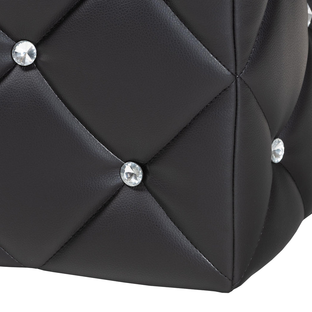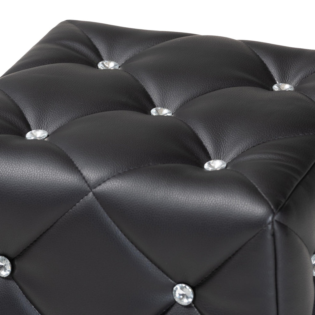 Elevate your space with the glamorous appeal of the Stacey ottoman. Crafted with a solid and engineered wood frame, this piece offers durable support in a sleek, compact design that fits effortlessly in a living room, entryway, bedroom, or shared space. The Stacey showcases a modern, contemporary look with smooth faux leather upholstery and plush foam cushioning. Elegant button tufting accented with faux crystal details adds a touch of sophistication, bringing refined style to your décor. Chic and space-saving, the Stacey ottoman arrives fully assembled and ready to use. Made in China.