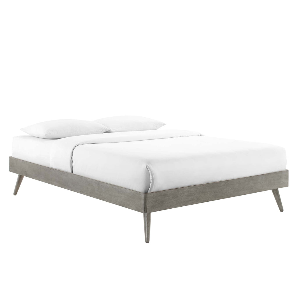 Incorporate modern style able in the bedroom with the Margo Full Platform Bed. Inspired by mid-century design, this full size bed frame boasts retro detail with contemporary accents and organic aesthetics to bring trending modernity to your guest bedroom or teenager's bedroom. Adapting to any decor theme with the option of interchangeable headboards, this bed frame is compatible with the Robbie, Draper, Archie, and Collins headboard collections. This platform bed frame is a sturdy addition to the bedroom with a durable wood, MDF, and veneer construction and four splayed rubberwood legs. Eliminating the need for a box spring, this full bed is complete with a wood slat support system, reinforced center beam, and supporting legs that make it a lasting mattress foundation for memory foam, latex, innerspring, and hybrid mattresses. Assembly required. Full Bed Frame Weight Capacity: 601 lbs.