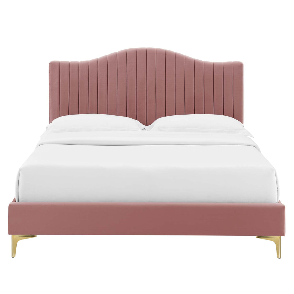 Elevate your bedroom decor with the Juniper King Platform Bed. This stunning bed features opulent style, highlighted by channel tufting and a sweeping curved silhouette that adds deco flair and vintage modernity to any master bedroom or guest suite.