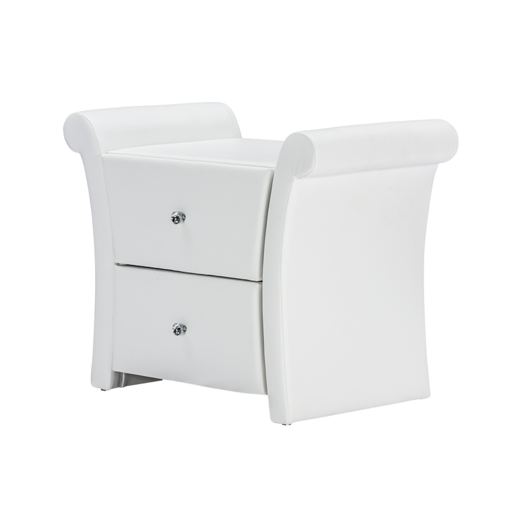 This compact and stylish bedside table serves as an excellent addition to any bedroom decor. Its understated design features a smooth matte white finish. The contemporary aesthetic will also enhance any interior design scheme. With two storage drawers, it provides ample space for your cherished items.