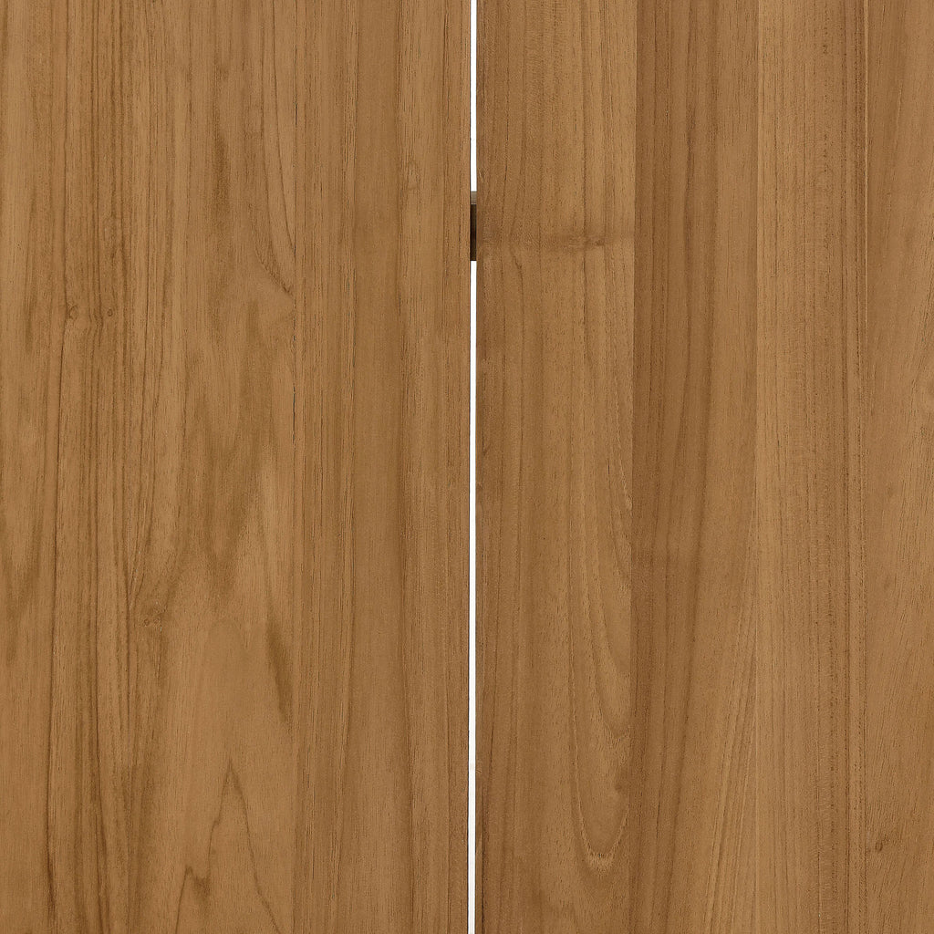 Refresh your outdoor dining experience with the Vienna Teak Wood Dining Table, an exquisite addition for everyday casual dining outside. This square outdoor dining table, crafted from beautiful teak wood that is naturally weather-resistant, features chic rounded corners that create a contemporary and cohesive look ideal for any patio or garden setting. Perfect for cozy meals and small get-togethers, this outdoor dining table seats 4 people. Standing on four solid wood legs, the 46-inch square Vienna Teak Patio Table provides stability and durability, creating a timeless focal point for your outdoor decor. Whether used as wood bistro table, an outdoor breakfast table, or paired with the complete Vienna Outdoor Teak Wood Furniture Set, this square patio table complements a diverse range of outdoor patios. Assembly Required.