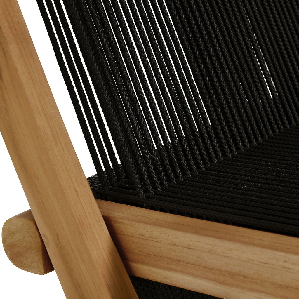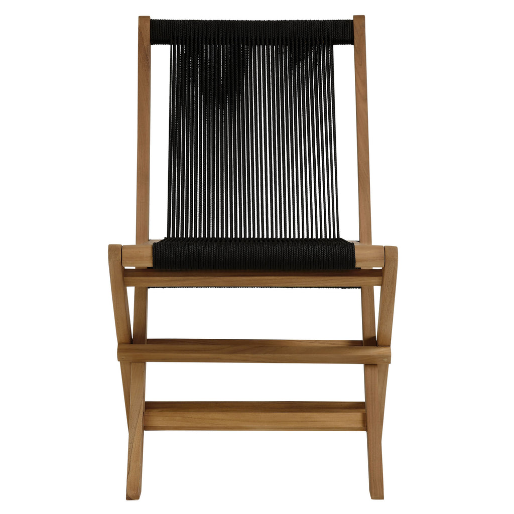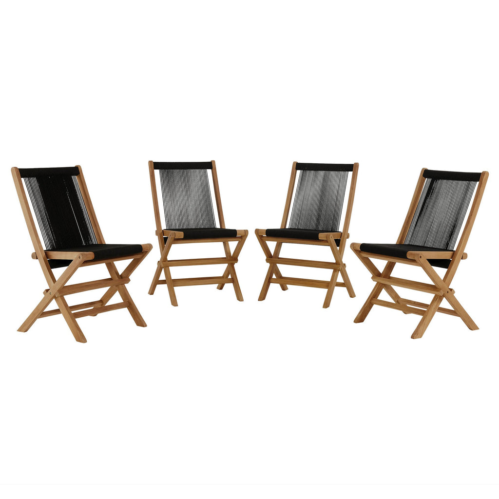 Refresh your outdoor dining experience with the Vienna Outdoor Folding Dining Chair Set, an al fresco addition that invites relaxation and conversation. These 4 outdoor chairs feature a beautiful teak wood frame, naturally resistant to weather, paired with seats intricately woven with high-quality nylon rope, creating a contemporary and cohesive look ideal for any patio or garden setting. Conveniently foldable, these teak wood dining chairs also sport an armless design, which allows them to be stored away when not in use or quickly brought out for extra guests. Add to that their slight recline in the backrest, plus their supportive stretchers, and these rope chairs provide the needed for extended dinner conversations. Whether used as foldable dining chairs, balcony lounge chairs, modern bonfire chairs or paired with the complete Vienna Outdoor Teak Wood Dining Set, this set of 4 folding patio chairs complement a diverse range of outdoor patios. No Assembly Required. Weight Capacity of Each Chair: 200 lbs.