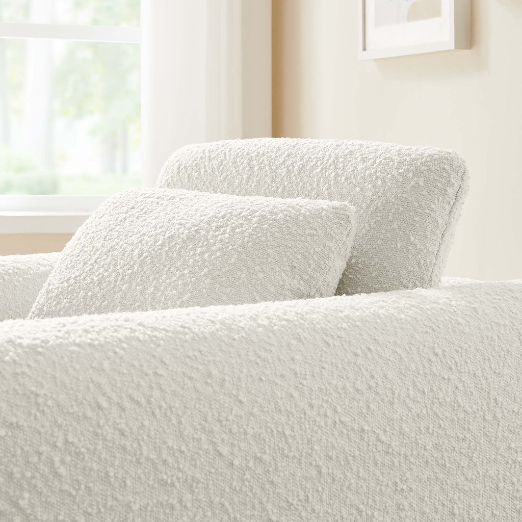 Divulge in the splendor of the one-of-a-kind Waverly Boucle Fabric Armchair. This living room chair features a unique, wavy shape complete with bent lines and rounded edges. With dense foam padding for superior this accent chair is upholstered in boucle fabric with a charming nubby texture. The spacious seat and plush removable cushions create an inviting look and offer superior while resting and relaxing. The adjustable non-marking foot pads elevate the upholstered armchair to perfectly fit your space while protecting your floors. With its beautiful silhouette and cozy this boucle chair is a stylish piece for the living room, bedroom, office, or reception area. No assembly required. Weight Capacity: 330 lbs.