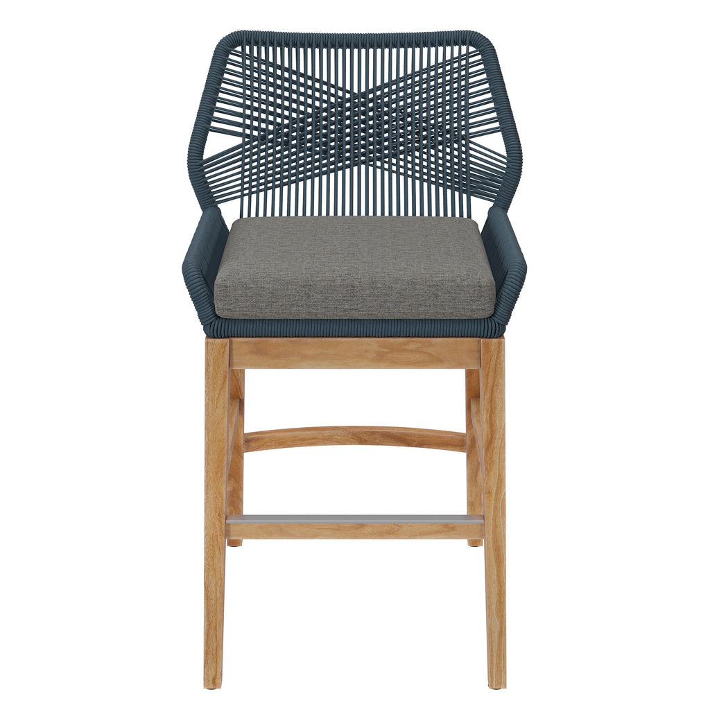 Wellspring Outdoor Patio Teak and Rope Counter Stool, Blue Graphite