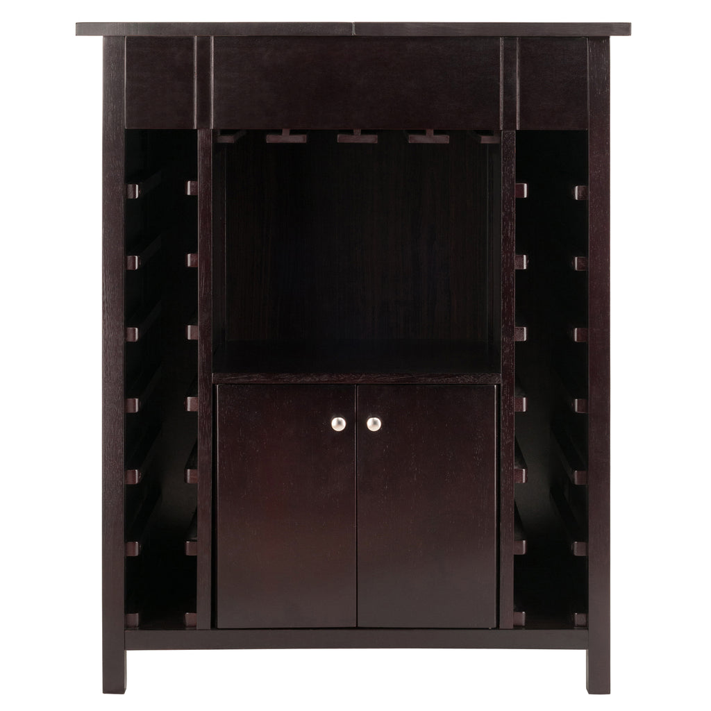 Keep your wine collection neatly stored away by using this Winsome Yukon Wine Cabinet. It offers you a bold, versatile way to store your wine bottles. It has a 14-bottle capacity as well as interior wine glass holders to display your finest. It also has a hidden storage compartment to hold other accessories that may come in handy when guests are over. It has a solid and composite wood construction and has an elegant finish that will go well in your dining or living room area. The Yukon Wine cabinet also features a hidden storage compartment just below the table top. It will surely impress your guests when you extend the top and have plenty serving space to pour several more glasses of wine. Conveniently packed and shipped in 1 box, that includes the hardware necessary for assembling.