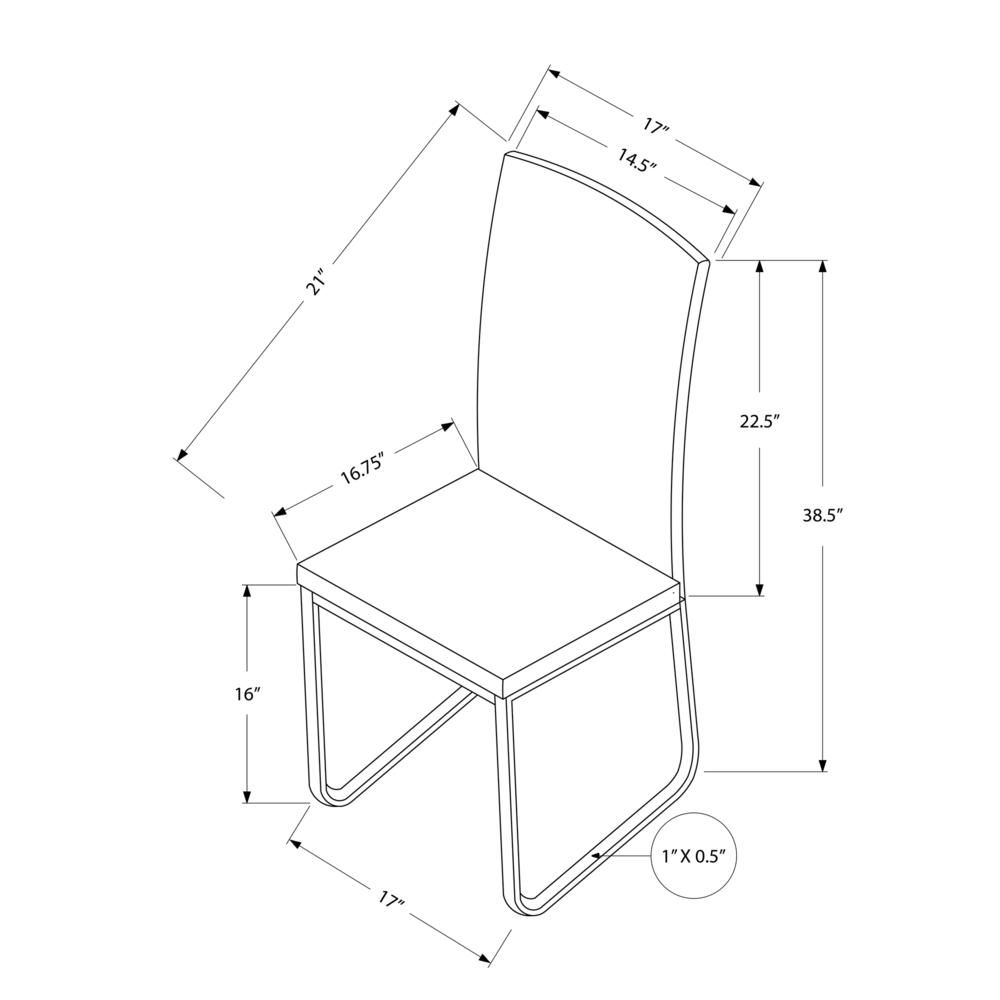 Show off these two up-to-the-minute kitchen chairs with confidence. They are made of a smooth upholstered black leather look material with sturdy contemporary chrome metal bases. Enjoy the enhanced comfy seat that will make a statement in your small home, apartment or condo. These armless dining room chairs will slide perfectly under the table to save space when not in use. Don't forget to match with an identical kitchen table to complete your stylish kitchen or dining room collection.
