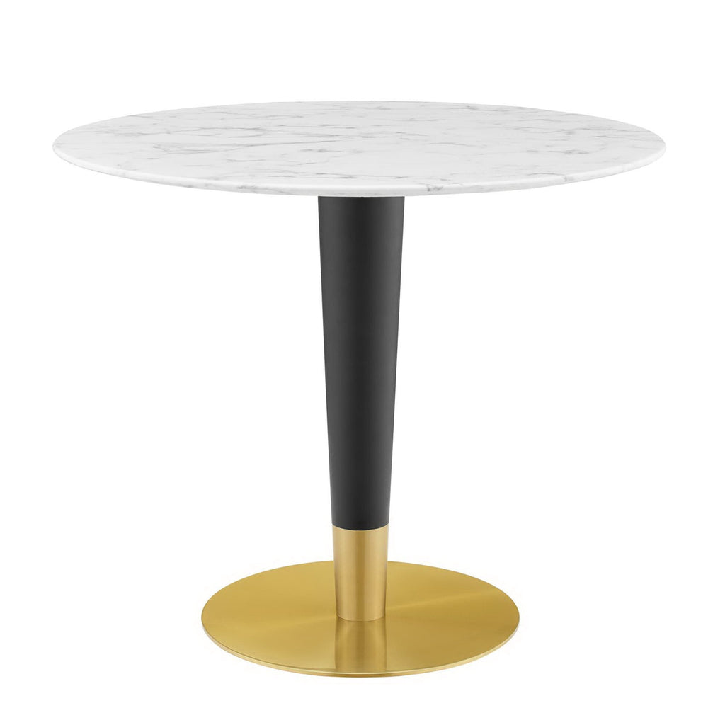 Zinque 36" Artificial Marble Dining Table, Gold White