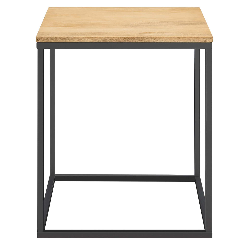 Enhance your space with the Zora Square Table, a side table with a metal base that seamlessly blends the warmth of a mango wood top with a powder-coated metal frame for a modern industrial look. The frame's linear, clean lines offer a sleek, contemporary feel. With non-marking floor glides included, it's an ideal end table that brings both style and function to small spaces. This wood metal side table doubles as a sturdy plant stand or a modern accent table, making it a versatile addition to any room. Assembly required. Weight Capacity: 88 lbs.